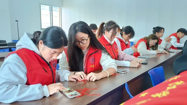 学院“青匠沐光”实践队成员走进集美区杏林社区,在社区工作人员指导下学习中国结编织技艺,感受传统文化魅力,并将这份文化活力带入社区服务。活动促进了文化传承与社区服务的深度融合,展现了青年一代用智慧与力量反哺社区的担当。
